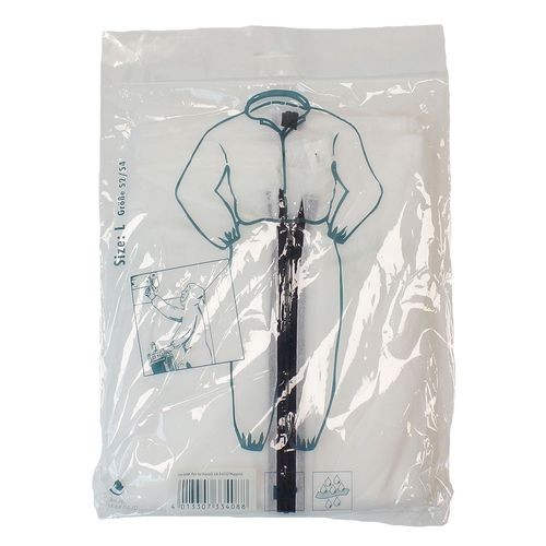 Combinaison de catégorie 1, conçue pour une protection contre les risques mineurs : saleté, éclaboussures, grosses particules de poussière. Élastiques au niveau des chevilles et des poignets. Fermeture à glissière.